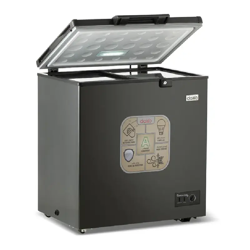 Le Congélateur DAIKO 260XDK CGC260XDK est un congélateur horizontal équipé d’une porte coulissante en verre avec panier, idéal pour conserver vos aliments tout en facilitant leur accès. Il utilise un réfrigérant écologique R600a de 40g, garantissant une performance efficace et respectueuse de l’environnement. Ce modèle bénéficie d’une fonction de congélation rapide, avec un système anti-bactérie pour une meilleure hygiène. Sa conception allie isolation thermique renforcée et faible consommation d’énergie, ce qui le rend performant et économique.