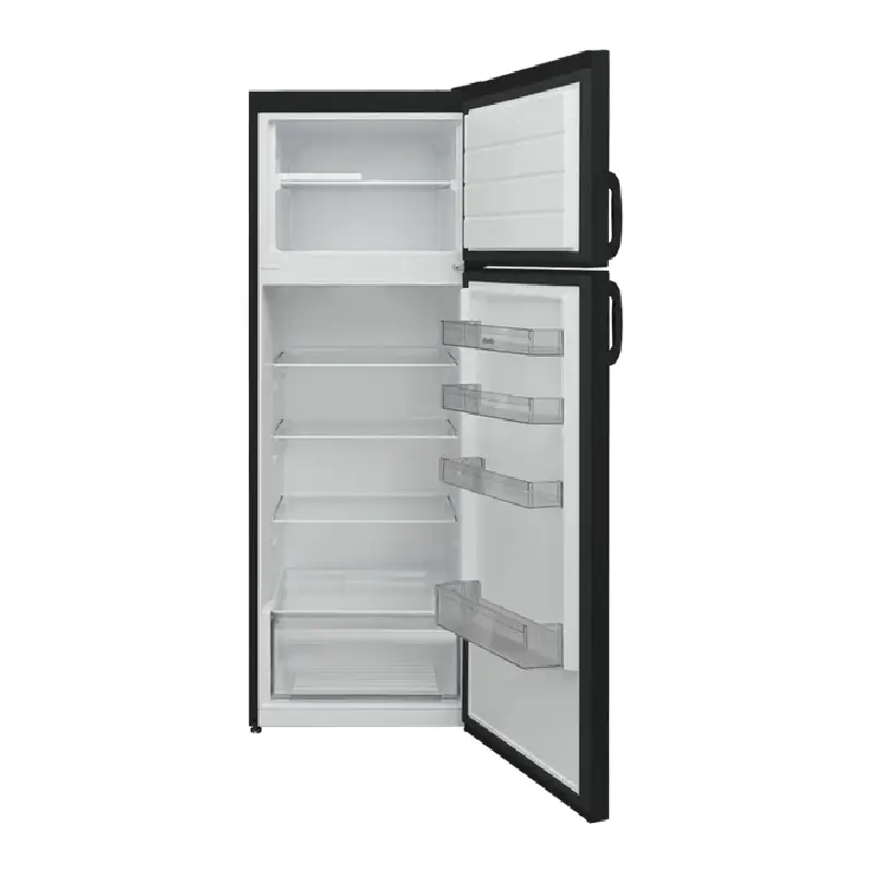 Réfrigérateur Daiko FTD-3908DK – Double portes avec finition élégante dark inox. Avec un volume net total de 312L, il est idéal pour les familles recherchant performance et efficacité au meilleur prix au Maroc. Ce réfrigérateur classé énergie A vous offre une consommation optimisée et un fonctionnement silencieux (40 dB). Son système Defrost, sa capacité de congélation de 3,5kg/24h et sa large capacité de stockage font de lui un choix idéal pour votre cuisine moderne.