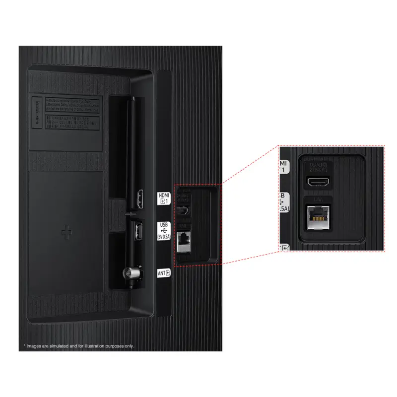 Wi-Fi 4, 2 HDMI, eARC, Anynet+ (HDMI-CEC), 1x USB-A, Ethernet, Entrée RF